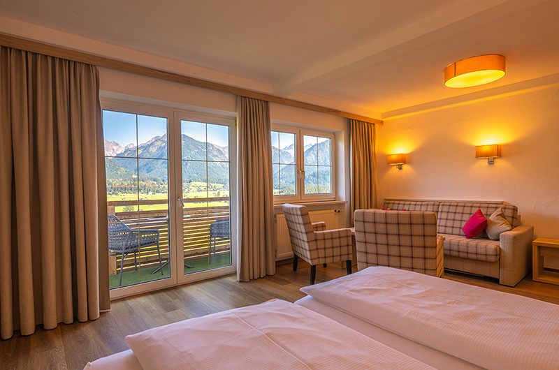 Unsere neu renovierten, freudlichen Zimmer laden mit der modernen und gemütlichen Einrichtung zu einem erholsamen Aufenthalt ein. Komfortabel ausgestattet mit einer schönen Aussicht auf Wiesen, Wald oder das unvergleichliche Oberstdorfer Bergpanorama bietet Ihnen unser Hotel allen Komfort, um einen entspannten Urlaub zu verbringen.