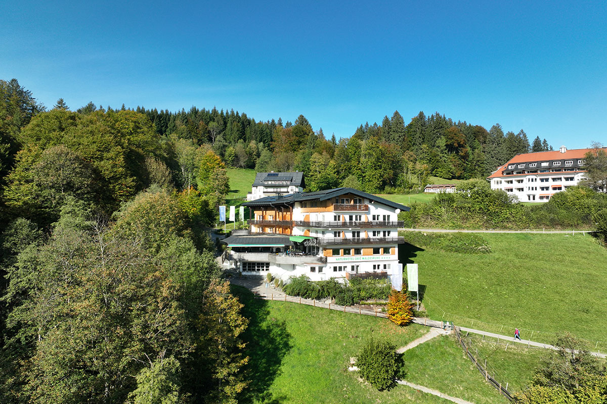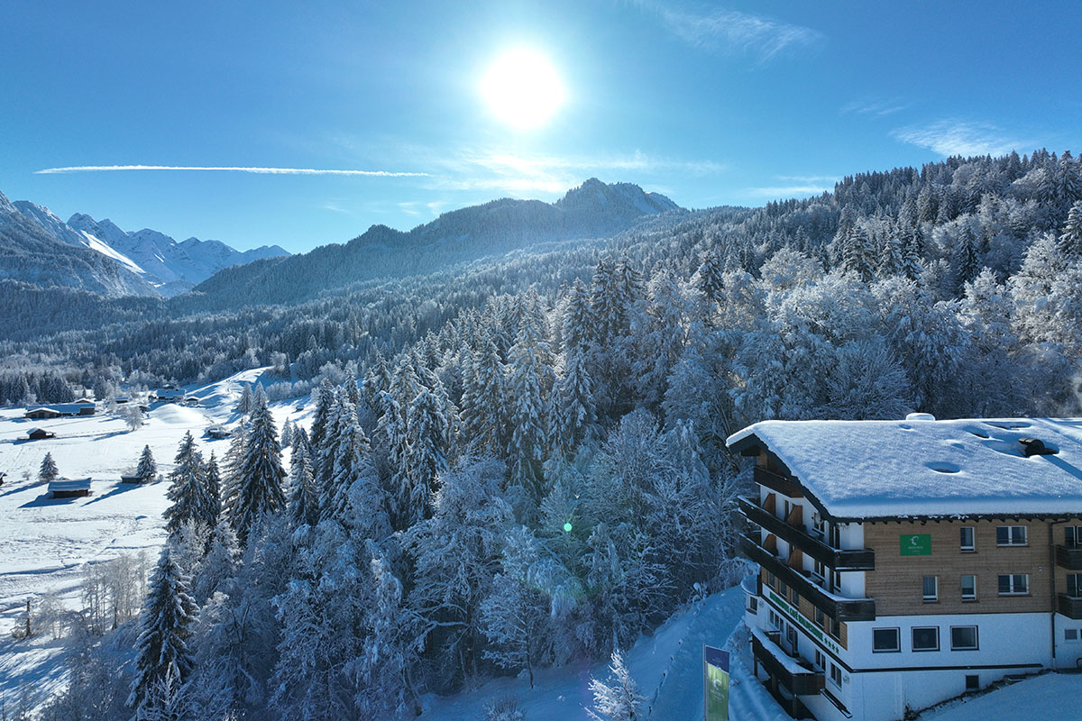 When staying with us, your holiday starts right on your doorstep: surrounded by meadows and forests, hiking trails invite you to explore the surroundings at any time of the year. For sport enthusiasts we also have our own fitness centre, complete with professional equipment, as well as a swimming pool. Those in search of wellness will find peace and relaxation in our sauna with its adjoining relaxation room. Despite our hillside location, the hotel is only a few minutes walk from the centre of Oberstdorf.