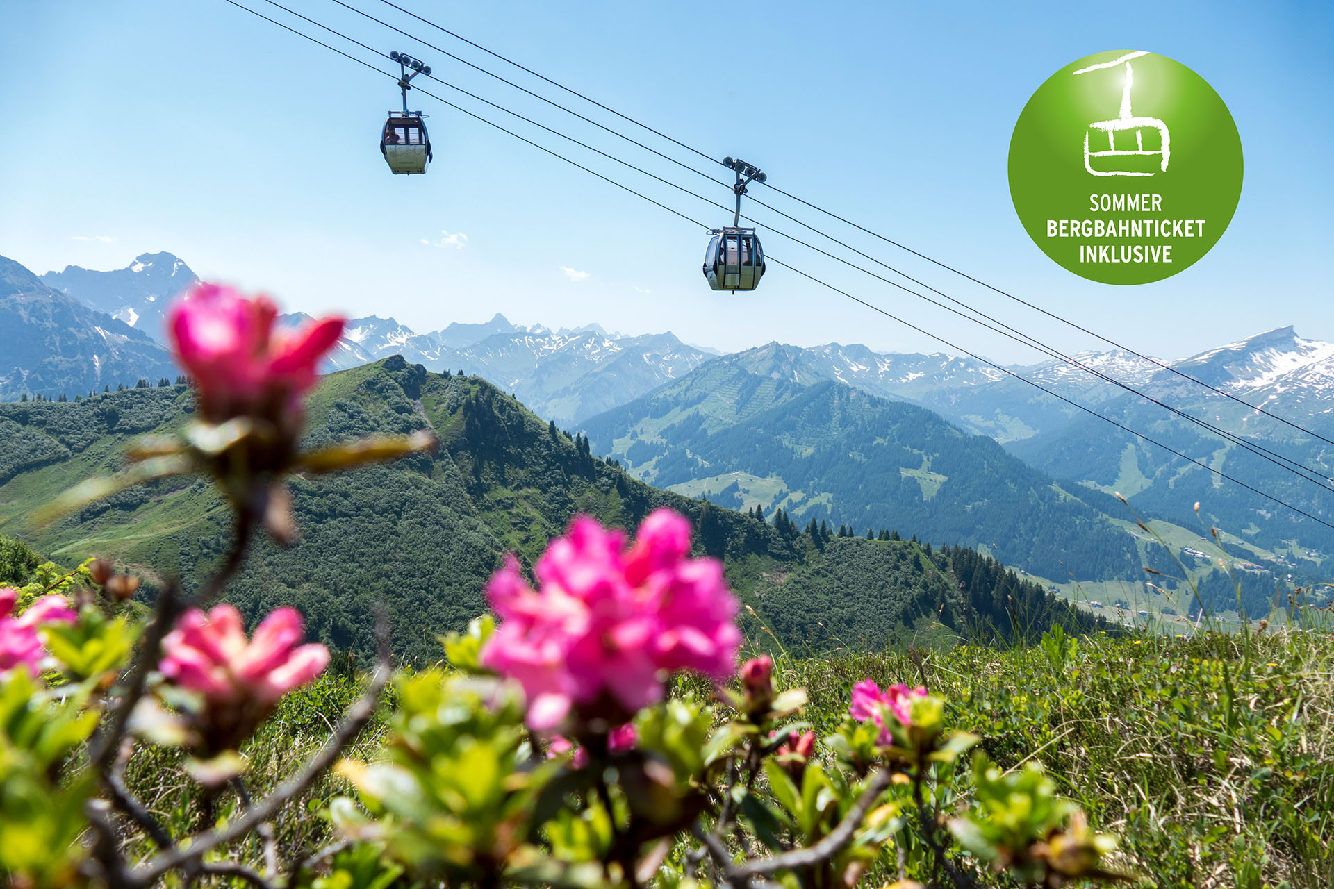 Guests of our house receive the "Bergbahnen - grenzenlos inklusive" ticket, which is valid from May until the beginning of November. Bergbahnen inclusive means "boundless" mountain railroads ride as often as you like with a view over the Allgäu Alps.